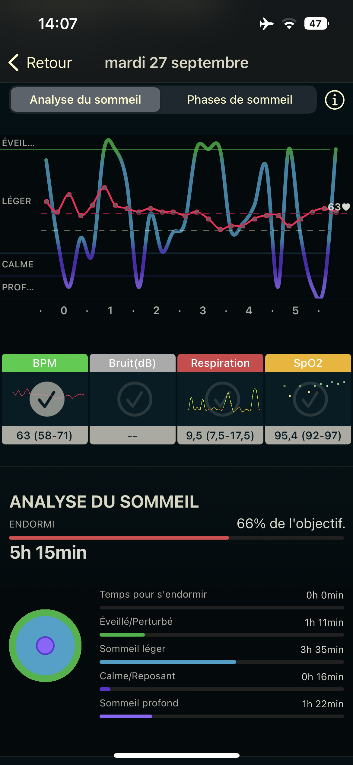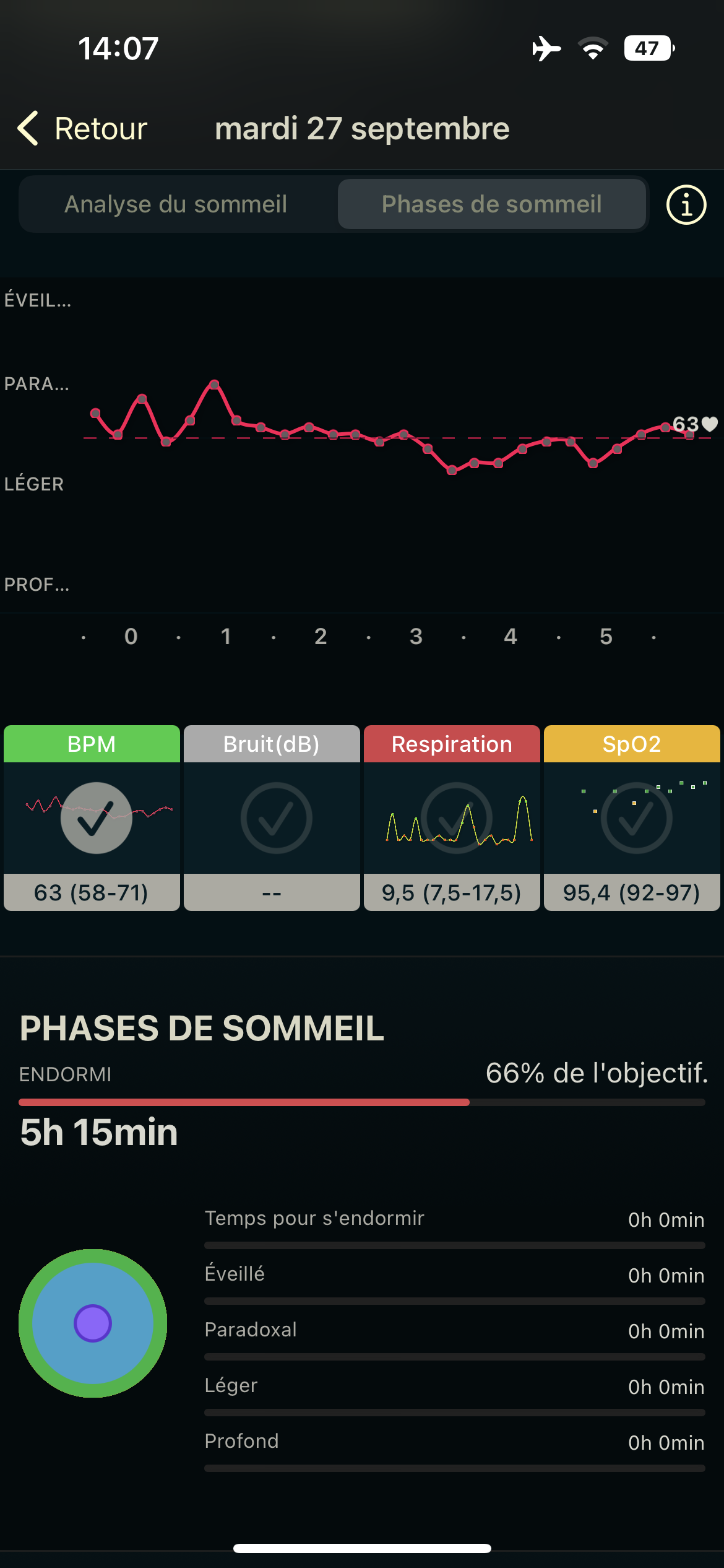 D'ailleurs dans l'app Autosleep les phases de sommeil semblent être presente sur la graphique "analyse du sommeil" mais manquantes sur le graphique"phases de sommeil" où là n'apparaît que la fréquence cardiaque.
