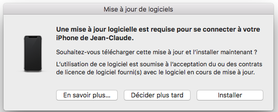 Mac demande une mise à jour pour se connecter à l'iPhone