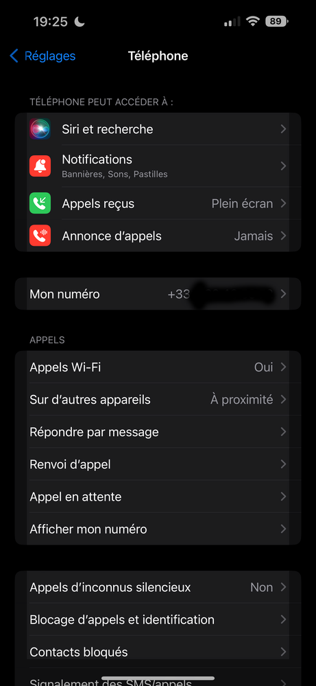 Affichage numéro de téléphone sur iPhone