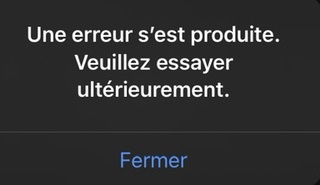 message d‘erreur « Une erreur s'est produite. Veuillez essayer ultérieurement. »