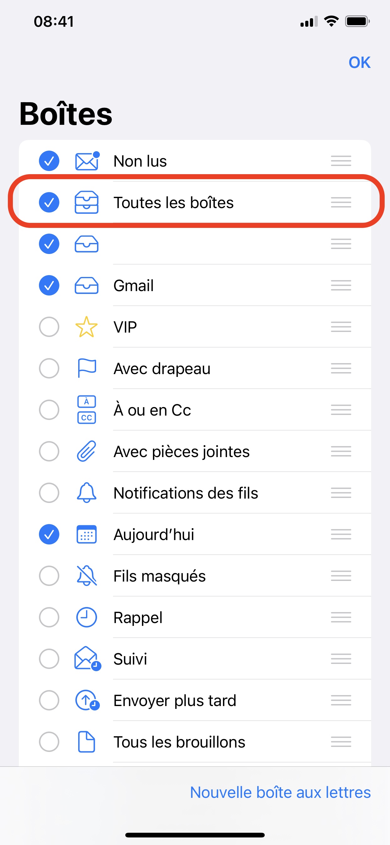 Le choix "toutes les boites" n'apparaît plus et il me faut jongler avec chaque boite mail.