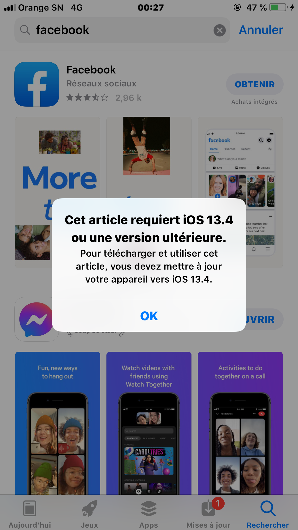 Si aucune mise à jour ne vous est proposée, c’est que votre iPhone ne supporte pas les mises à jour supérieures d’iOS.
