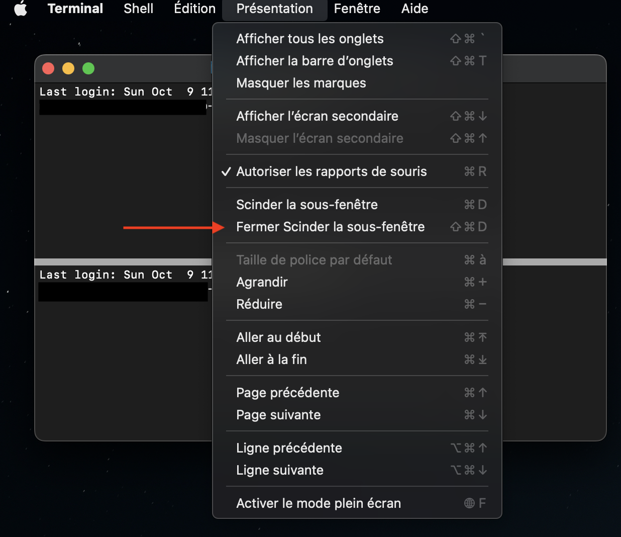 Désactiver bouton scinder la sous-fenêtre du Terminal Mac