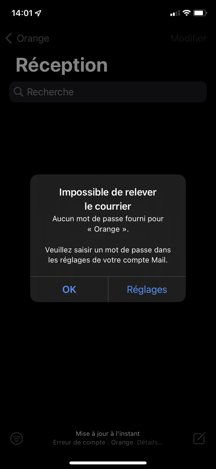 Mot de passe non reconnu sur boîte mail Orange iPhone