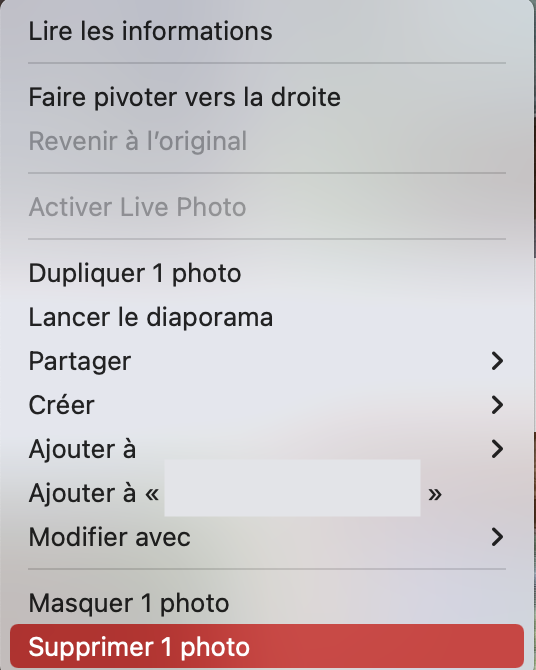 Tu sélectionnes l'élément sans l'ouvrir puis clic droit "Supprimer 1 photo".