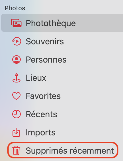 Si tu es sur "Photos", un dossier " Supprimés récemment" sera créé