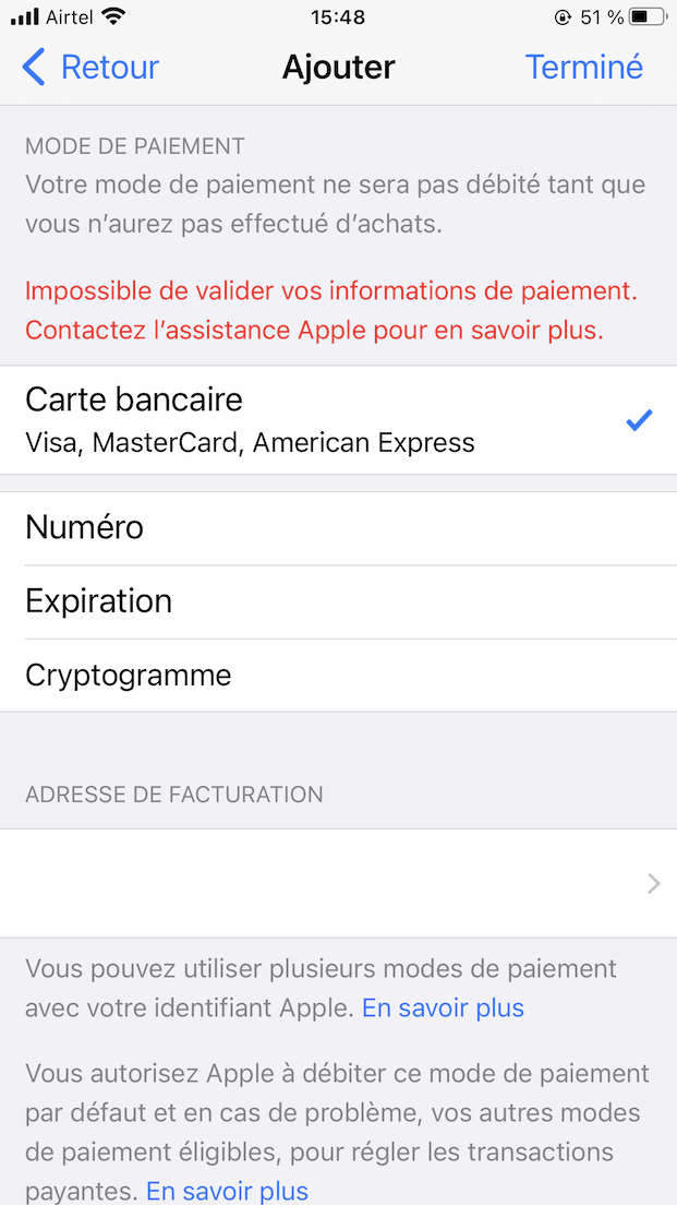 J’ai un problème j’arrive pas à mettre les informations de ma carte visa pour faire des achats sa refuse