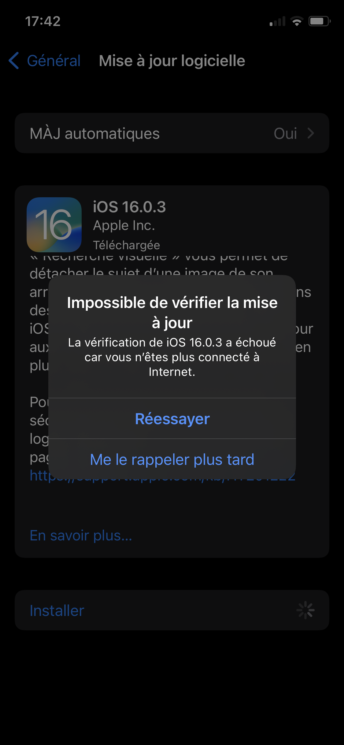 Je vous invite à consulter cette page Si votre iPhone, iPad ou iPod touch ne se met pas à jour - Assistance Apple (CH)