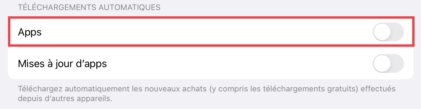 Sur votre iPhone, accédez à Réglages > App Store et cochez :
