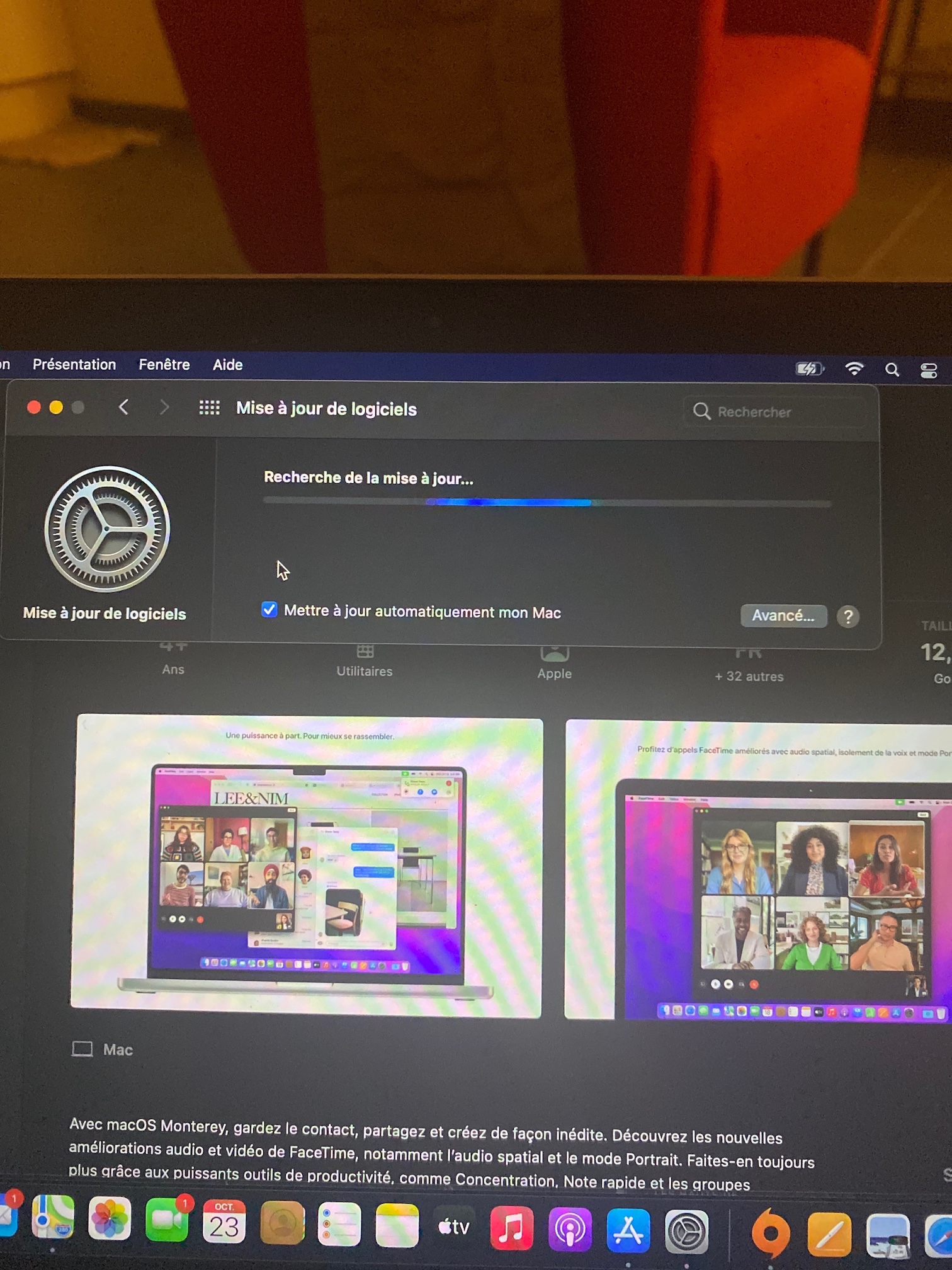 Quand je veux faire une mise à niveau de MacOs Big Sur 11.7 vers MacOs Monterey, je vais sur l’AppStore. Quand je clique sur le bouton «obtenir» cela me renvoie vers PreferenceSystème, un message s’affiche «recherche de la maj» pendant des heures mais rien.