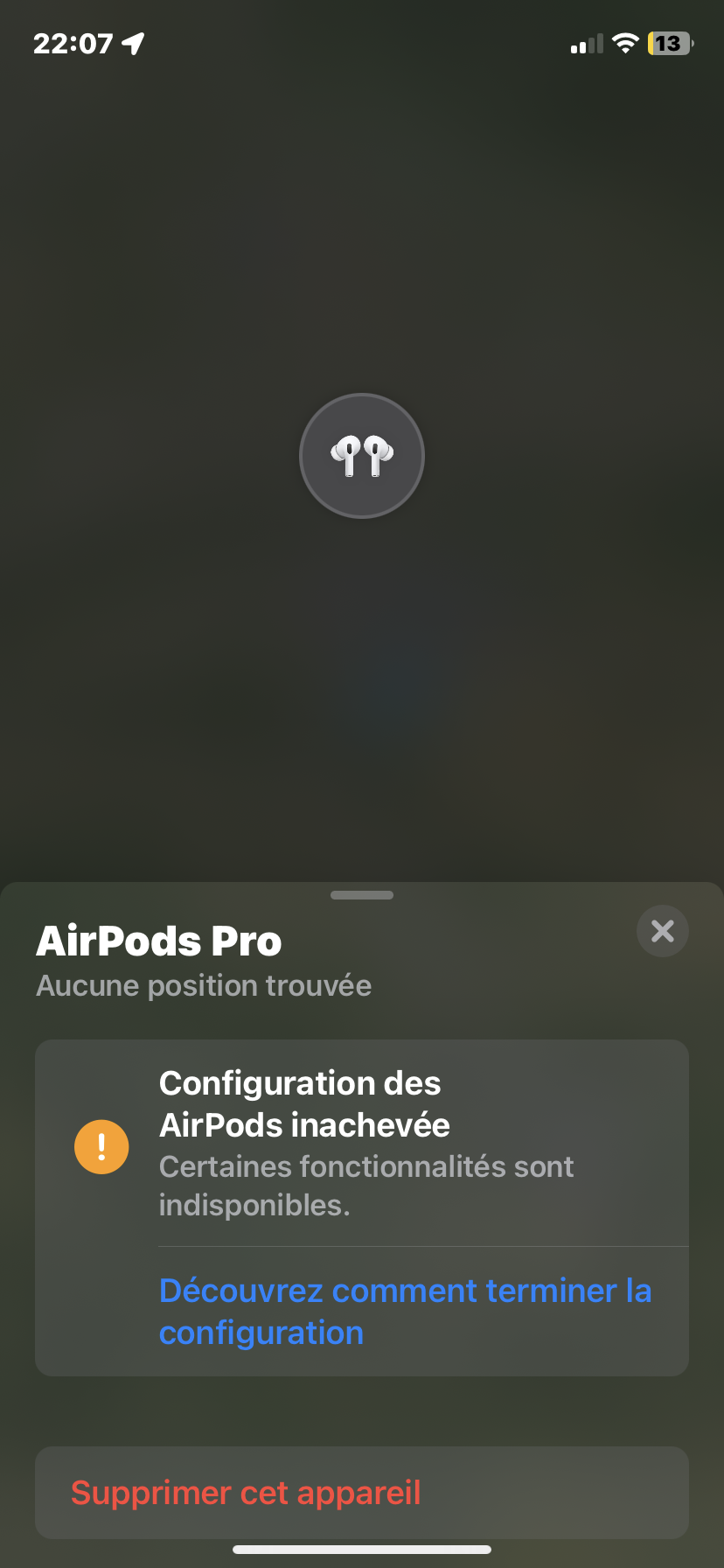 Si je comprends bien, lorsque tu tentes de configurer tes AirPods, tu reçois un message d'erreur te disant que la configuration est inachevée. Je t'avoue ne pas connaître ce message d'erreur.