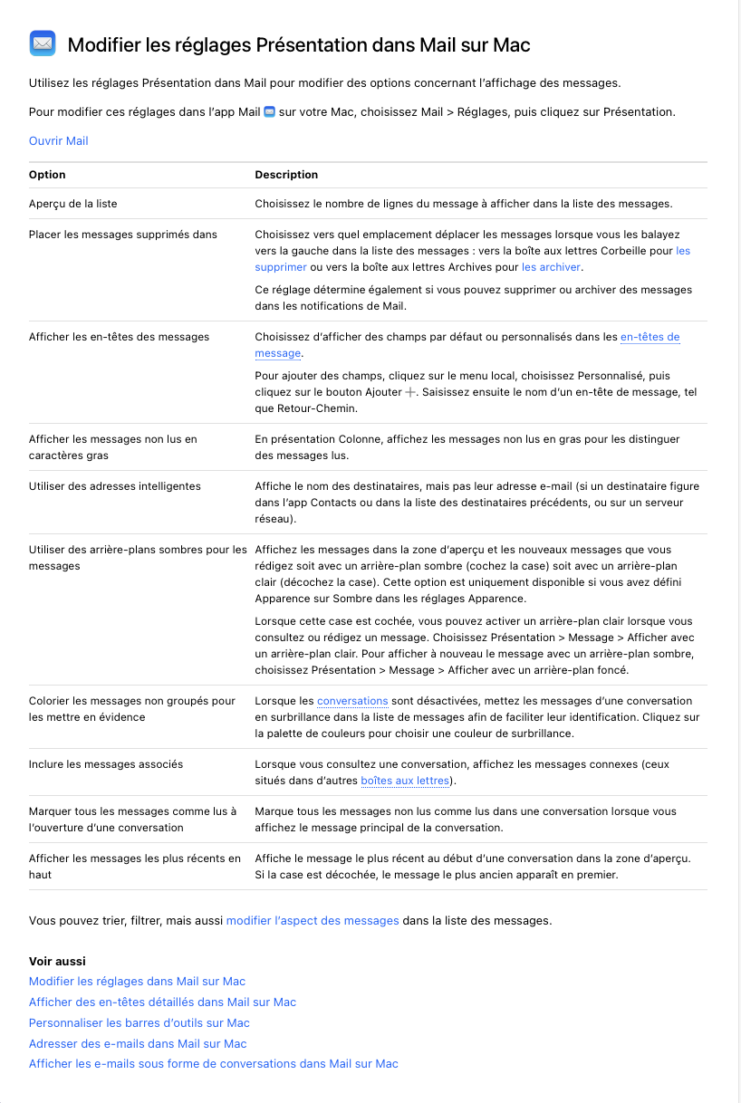 Rétablir l'affichage dans Mail pour Mac