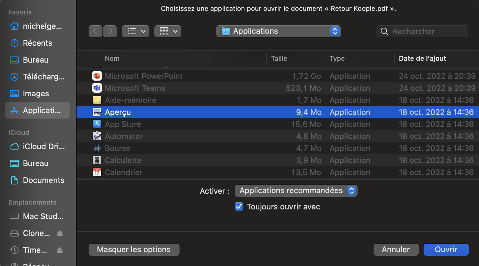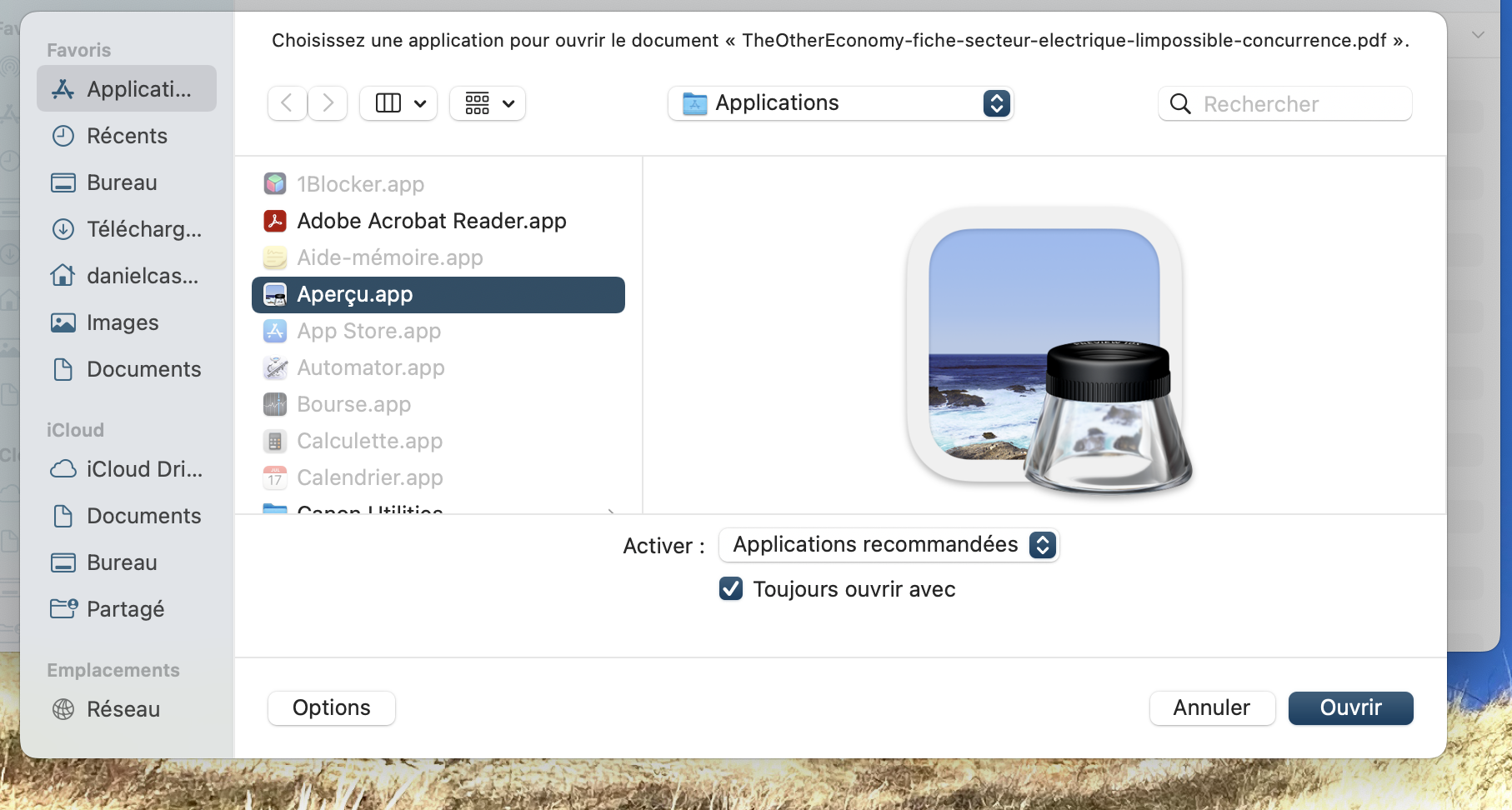 Mon Mac ouvre les pdf avec Adobe, je voudrais qu'il le fasse avec Aperçu (qui est l'application par défaut je crois)