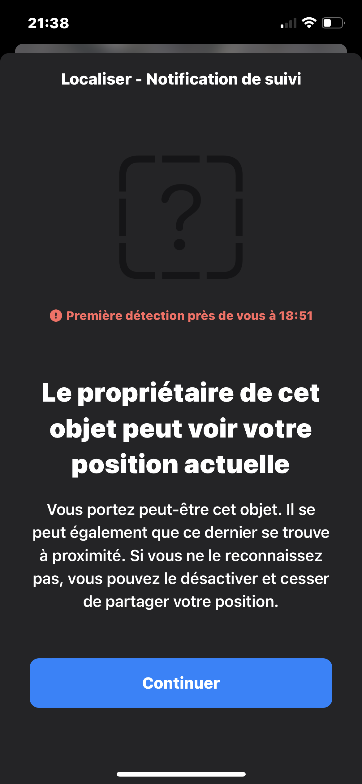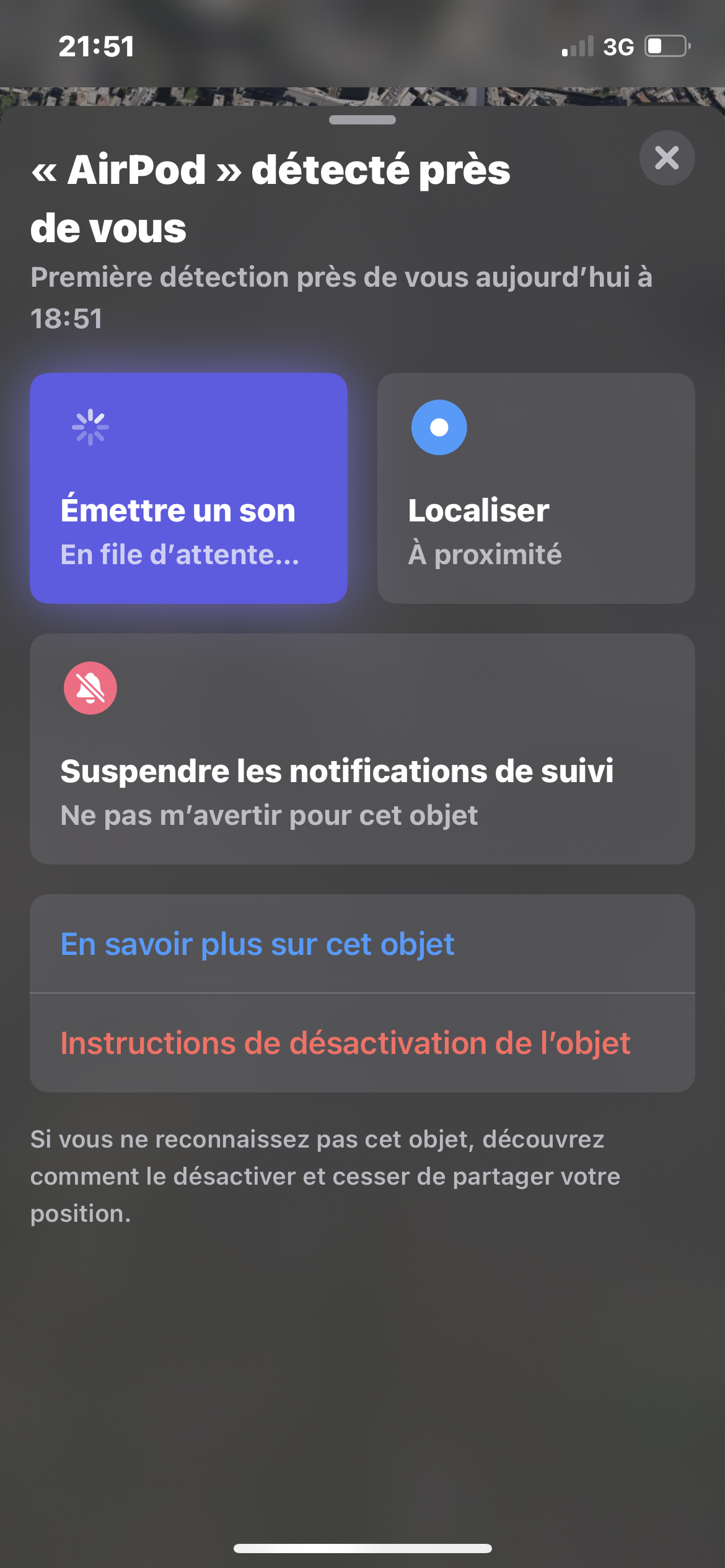 message d’alerte de air pods qui suivent pas position, impossible de les désactiver ni de les retrouver.
