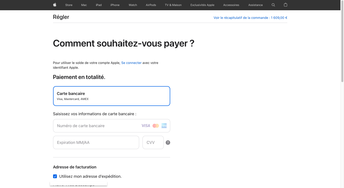 Paiement en plusieurs fois n'apparaît plus sur Apple Store