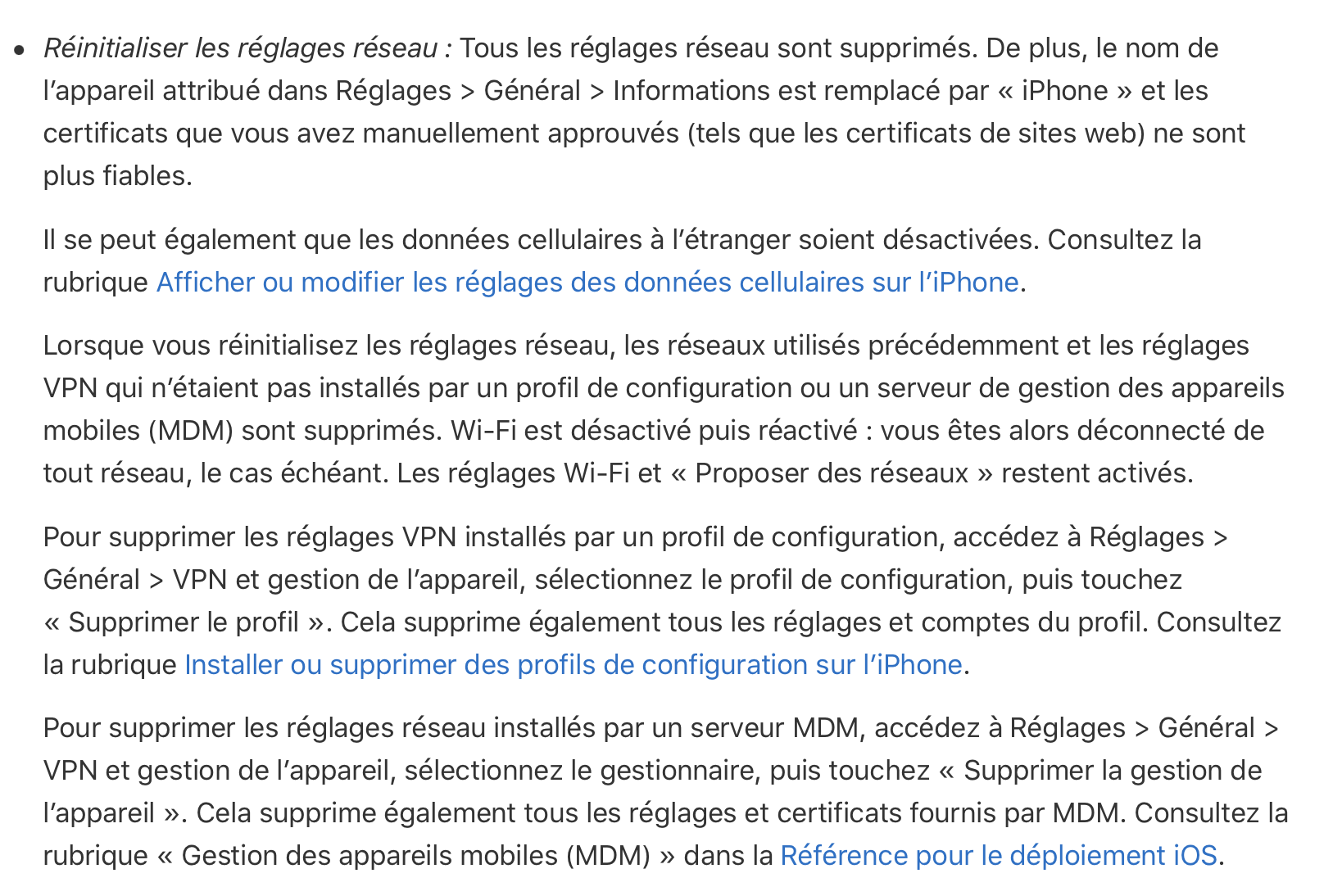 Si cela ne suffit pas, il faudra peut-être que tu réinitialises les réglages réseau :