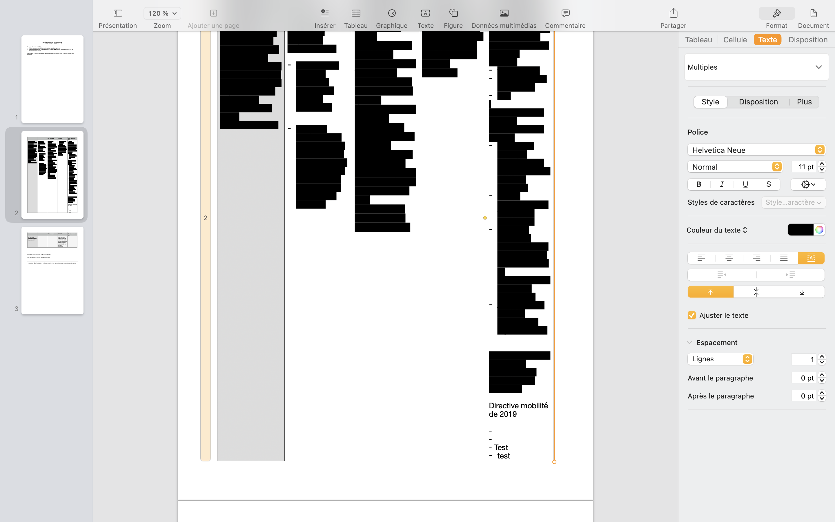 Bonjour, comment faire sur pages pour que mon tableau qui prend bien une page entière se sépare avant la fin de la première cellule et que mon texte soit encore visible ? Ma première ligne prend beaucoup de place et donc au lieu de se reporter sur la page d'après comme la ligne d'après, le texte disparait tout simplement.