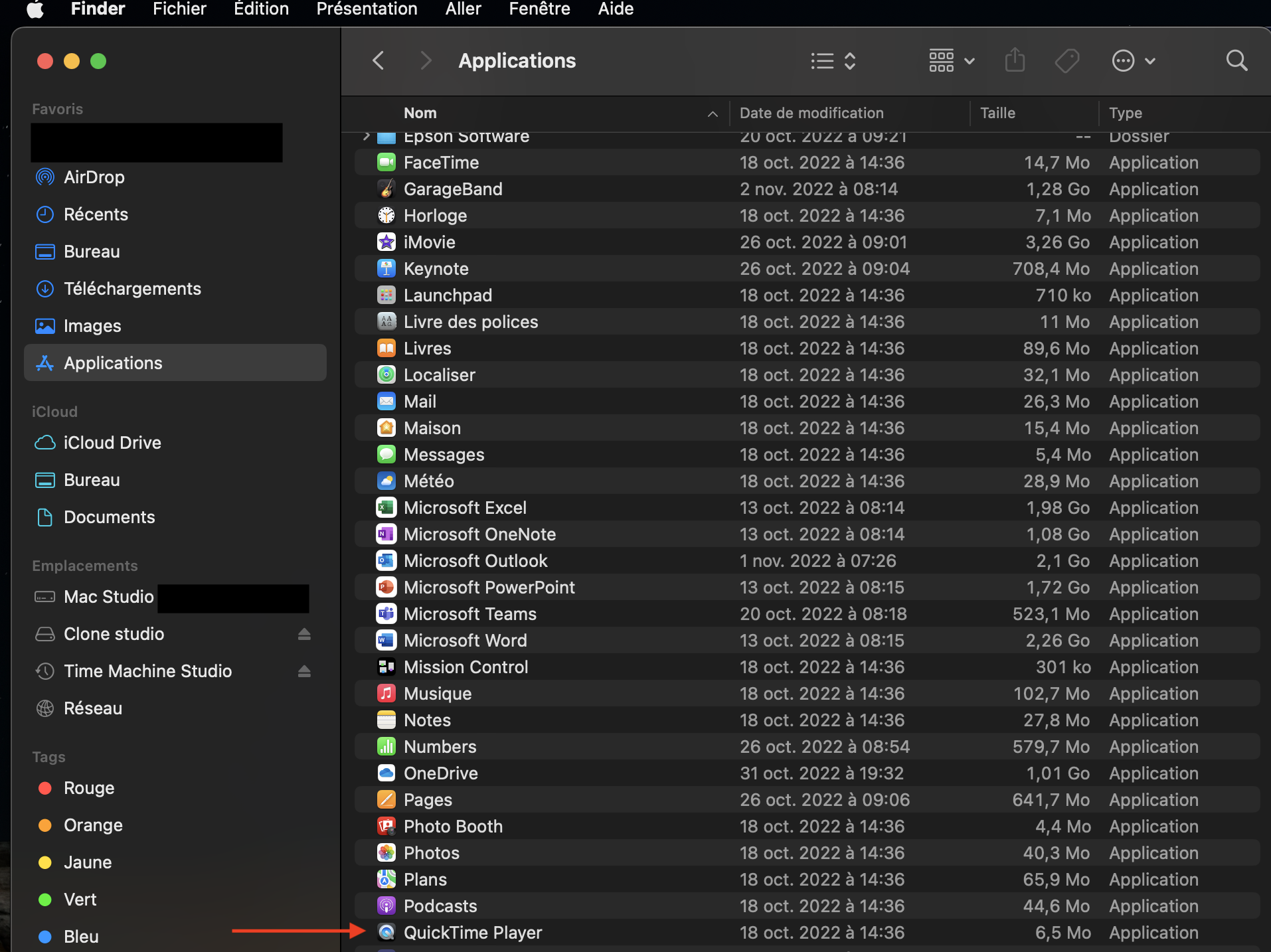 l'application QuickTime player ne s'ouvre pas dans mon MacBook Air. Quoi faire?