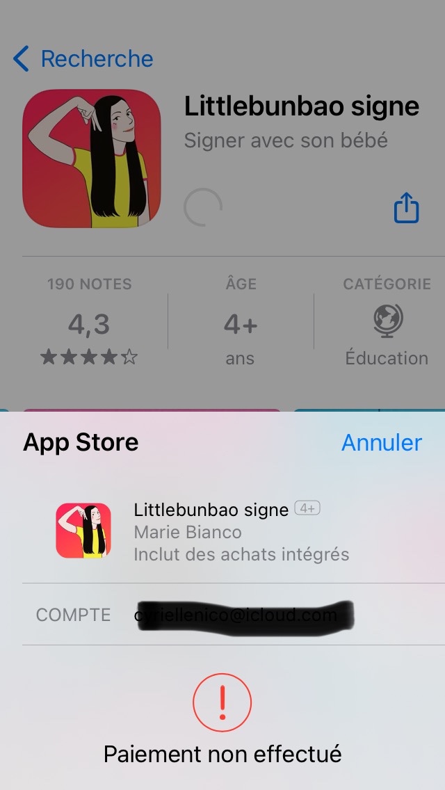 Je souhaite télécharger une application gratuite et au moment du téléchargement je me retrouve avec un message « paiement non effectué ». Comment ça se fait? Quoi faire?