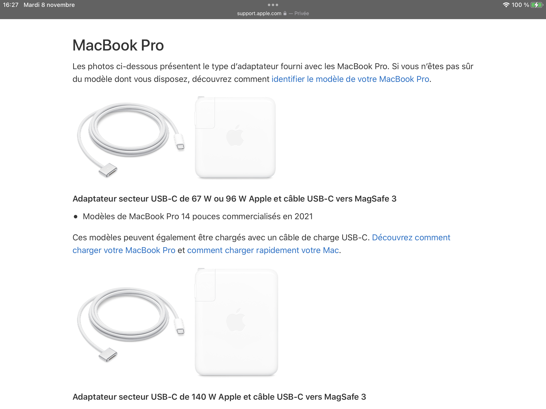 Je viens de changer d'ordinateur passant d'un macbook pro 13' avec un chargeur 61W à un macbook pro 14' avec un chargeur 96W