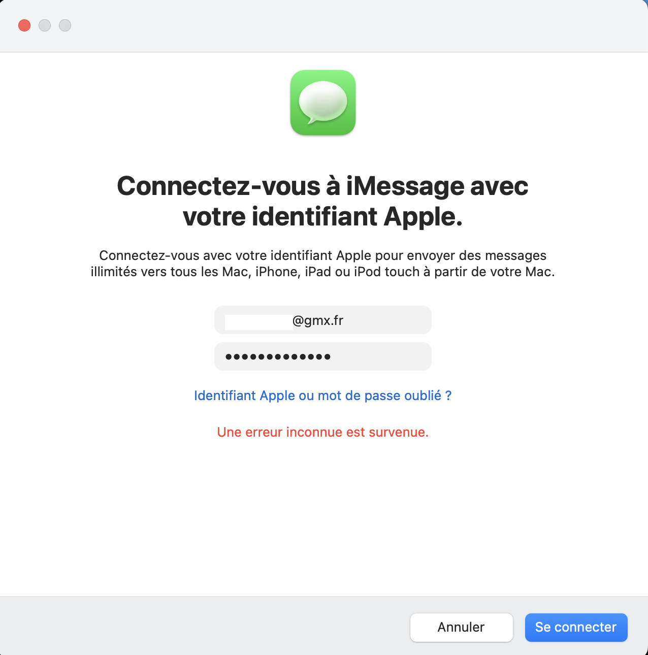 J'ai changé mon mot de passe sur l'application Messages (Monterey).