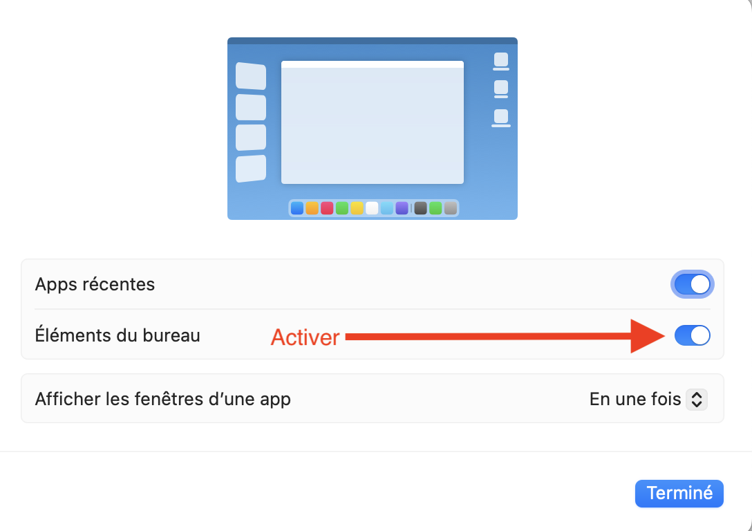 Et une configuration de Stage Manager, si celui-ci est en fonction, dans Réglages système