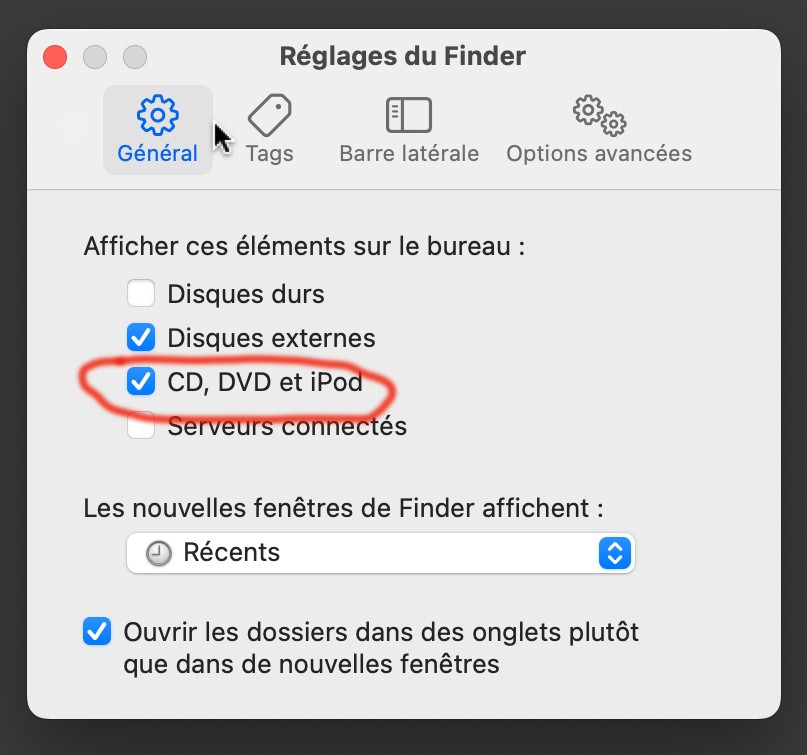 Merci pour votre réponse ...Je viens de voir sur le Finder que la case CD,DVD, et IPod n'étaient pas cochée...