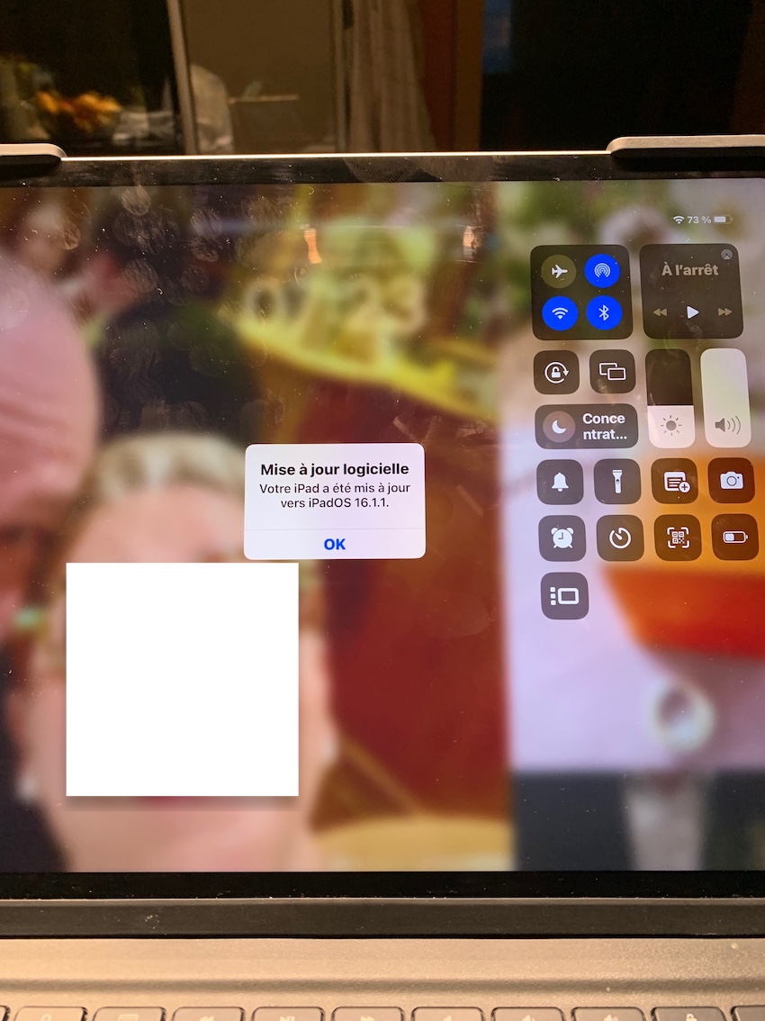 J’mon iPad indique sur l’écran mise à jour logiciel. Votre iPad a été mis à jour vers IPadOS 16.1.1
