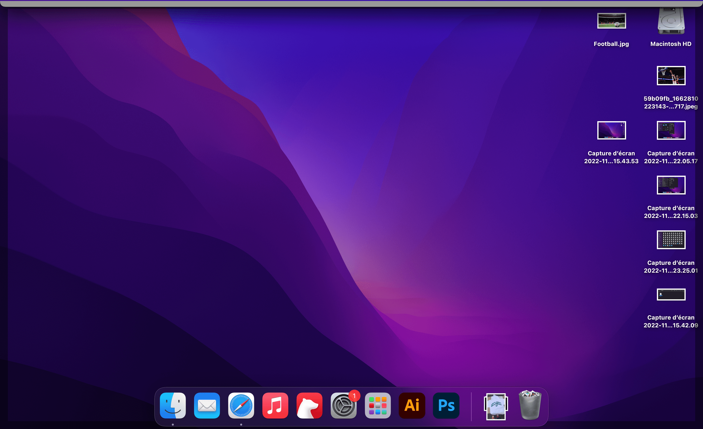 Bonjour, rien ne s'affiche / rien ne se passe lorsque je clique sur mon bureau de MacBook Pro. Je ne peux ni créer de dossier, ni voir mettre d'applications ni glisser d'images.