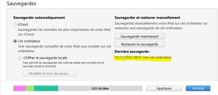 Restaurer une application depuis sauvegarde iPad