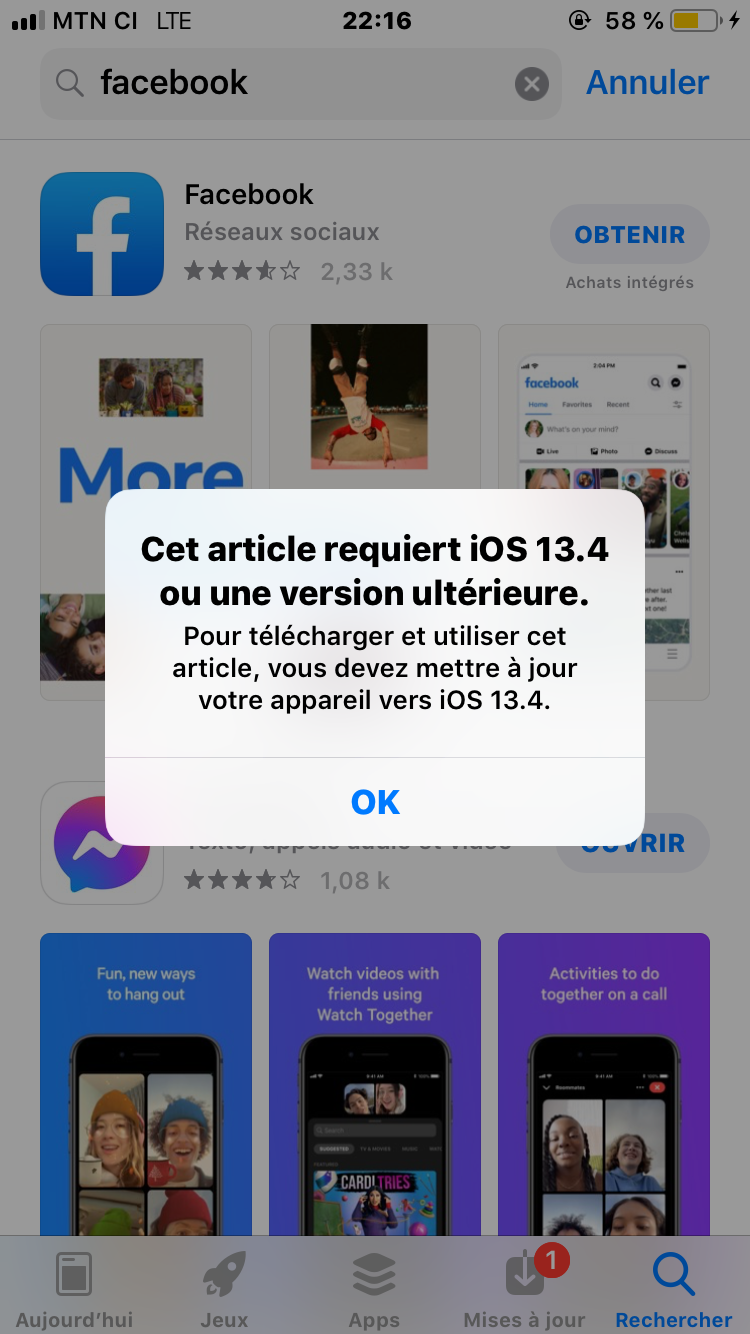 Mise à jour iPhone requise pour installer des apps