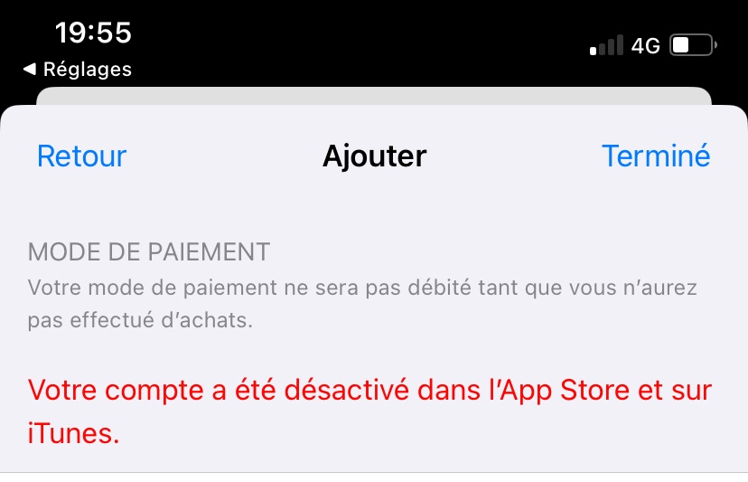 Compte désactivé dans l'App Store et iTunes