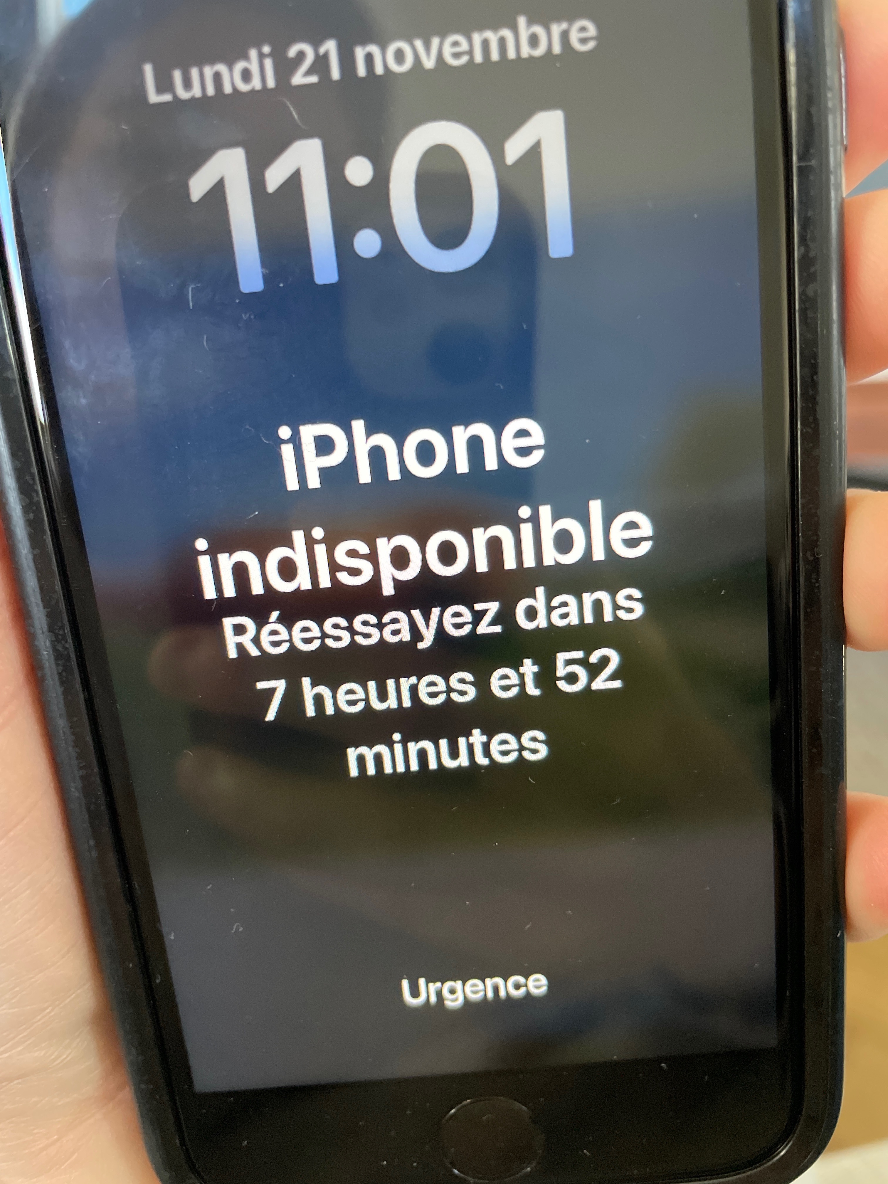 Malheureusement la seul solution et d'attendre et de saisir ensuite le bon code de déverrouillage ou de faire un reset du téléphone
