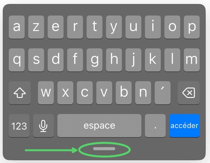 Pour retrouver votre clavier sur toute la partie inférieure de l'écran, maintenez votre doigt sur la barre se trouvant en bas du clavier tel que le montre cette capture d'écran :