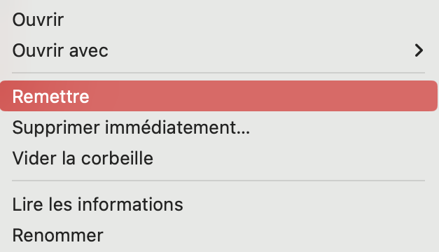 Je n'arrive pas à sortir l'appli de la corbeille pour la remettre sur l'ordi.