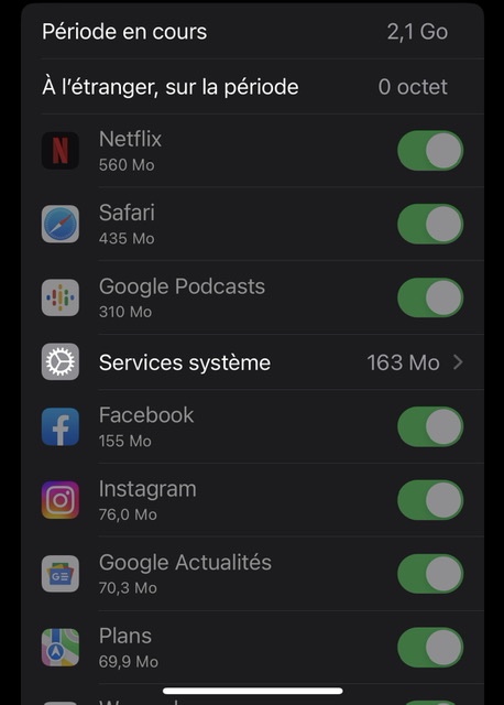 il ne m’est plus possible de choisir les paramètres d’activation des données cellulaires des applications (case à cocher en grisée) et des fonctions localiser.
