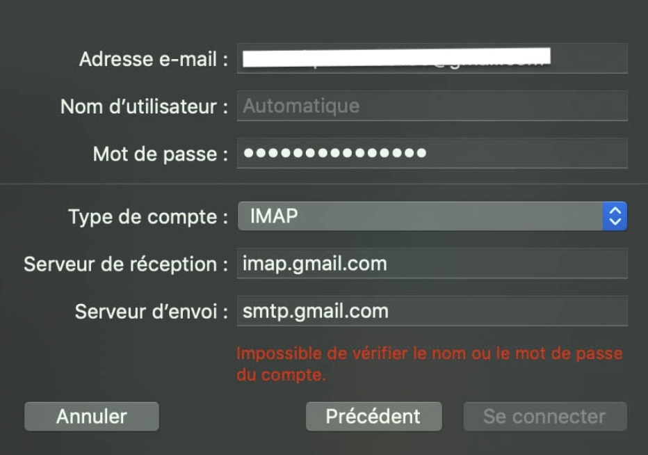 impossible de se synchroniser à Safari lors de la création d'un compte Gmail