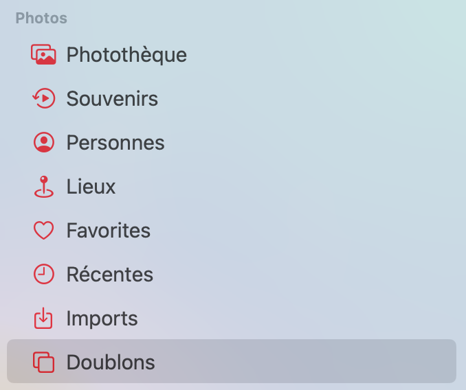 si tu n'as pas "Doublons" sur "Photos", c'est que tout est normal.