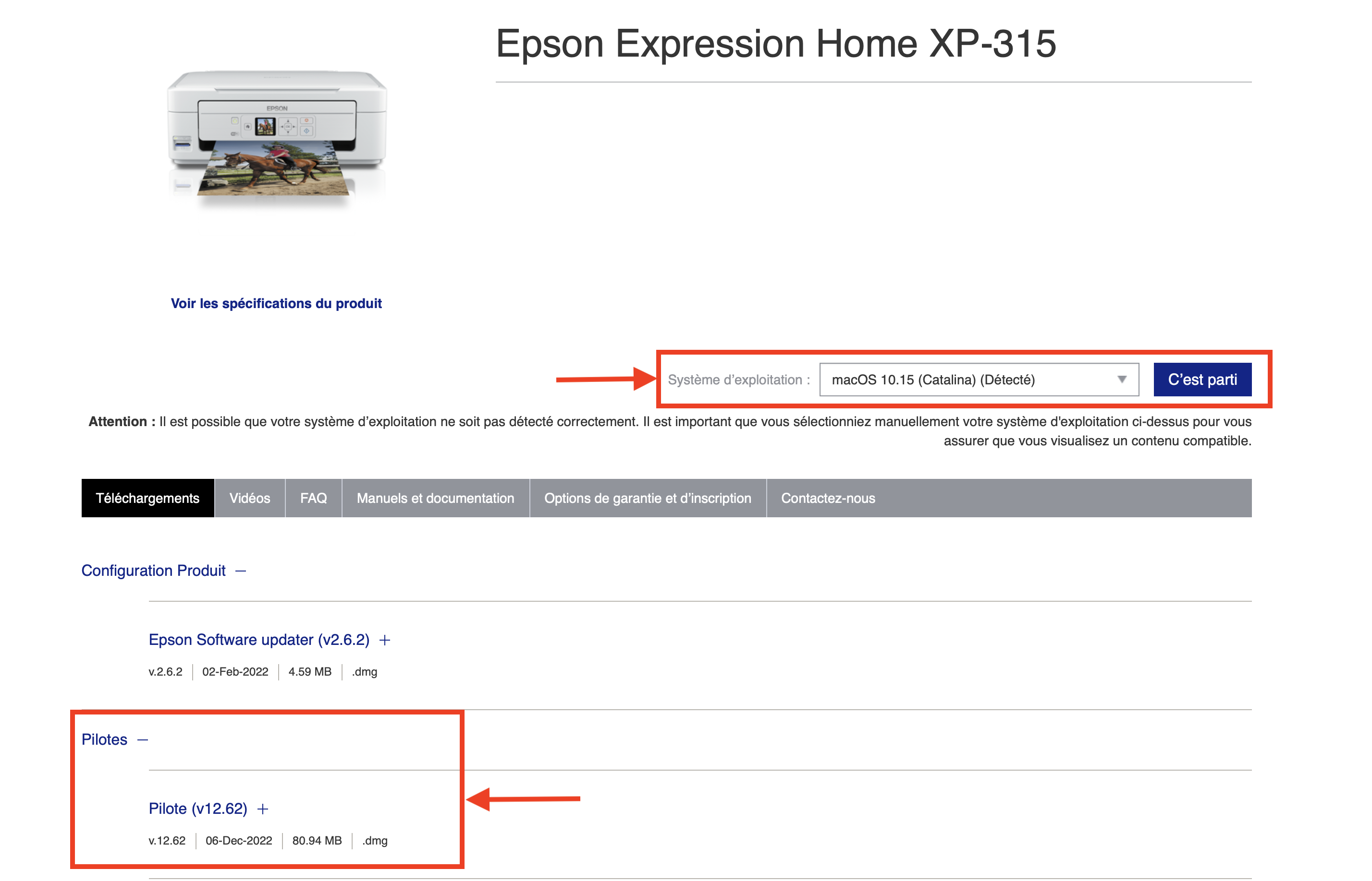 J'ai besoin de connecter mon imprimante Epson XP 315 les pilotes ne sont pas à jour quoi faire