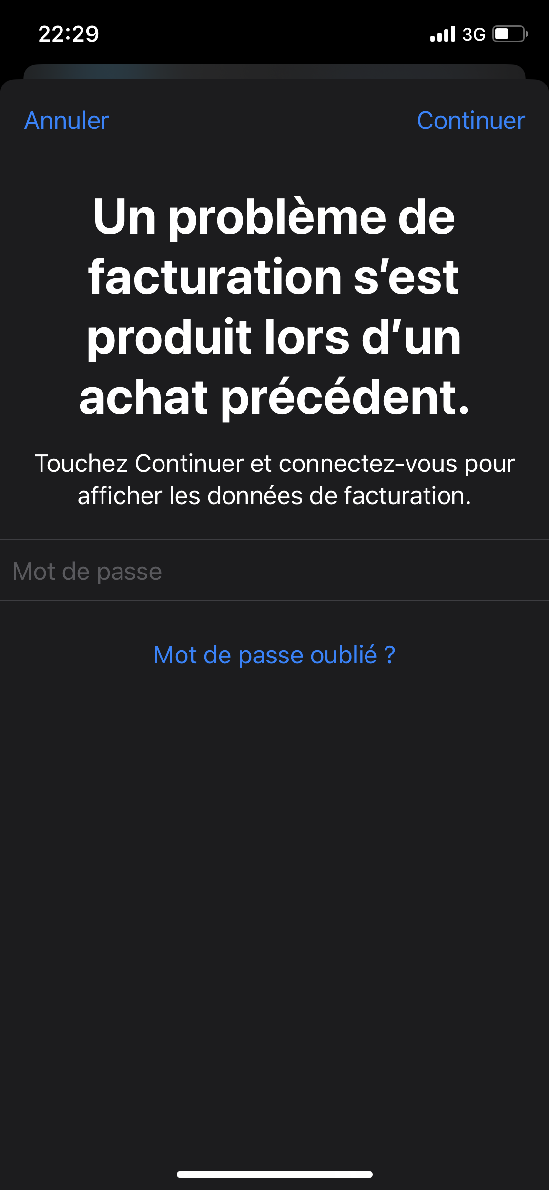 Bonsoir j’essaye de mettre à jour les apps gratuit mais ce message s’affiche : un problème de facturation s’est produit lors d’un achat précédent