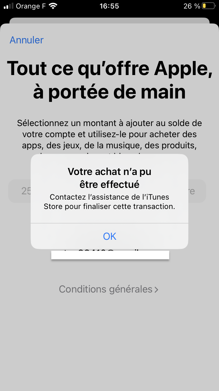 Je veux acheter des solde dans Apple et sa me met se message savez-vous pourquoi?