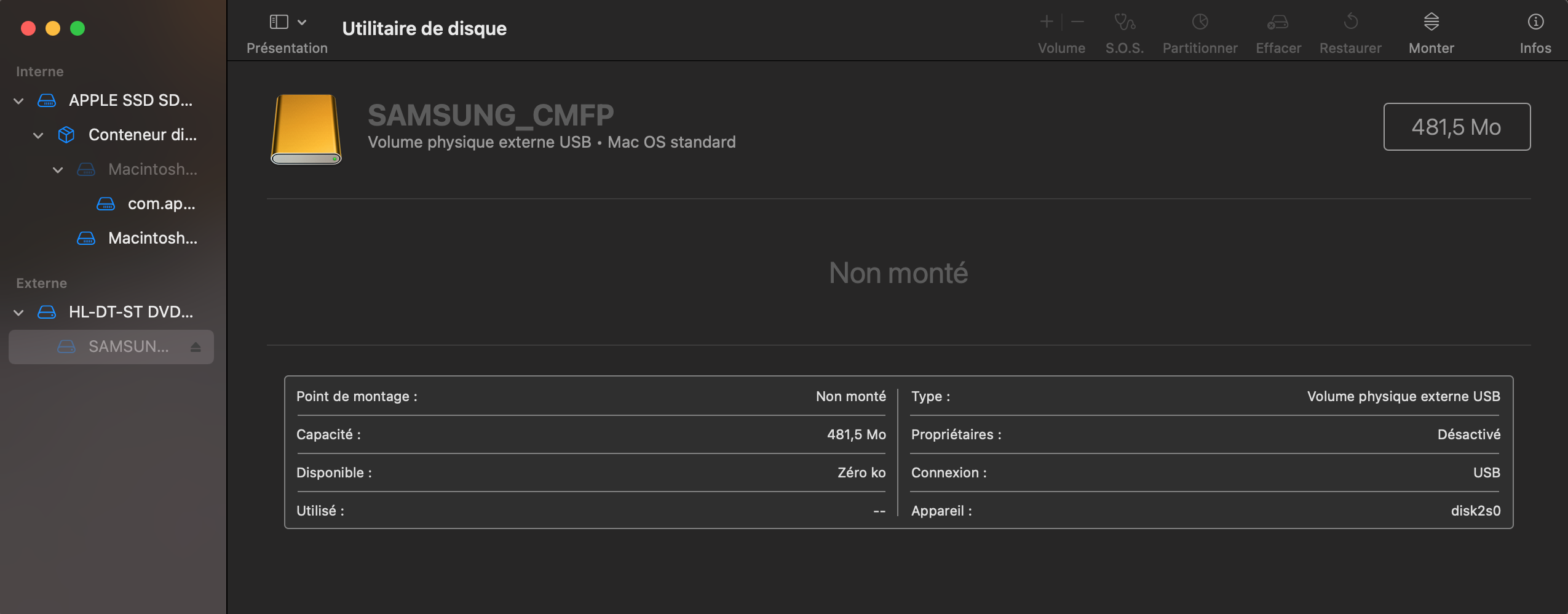 je n'arrive plus à utiliser le lecteur superdrive sur mon MacBook Pro 13. je suis sous l'OS Bigsur