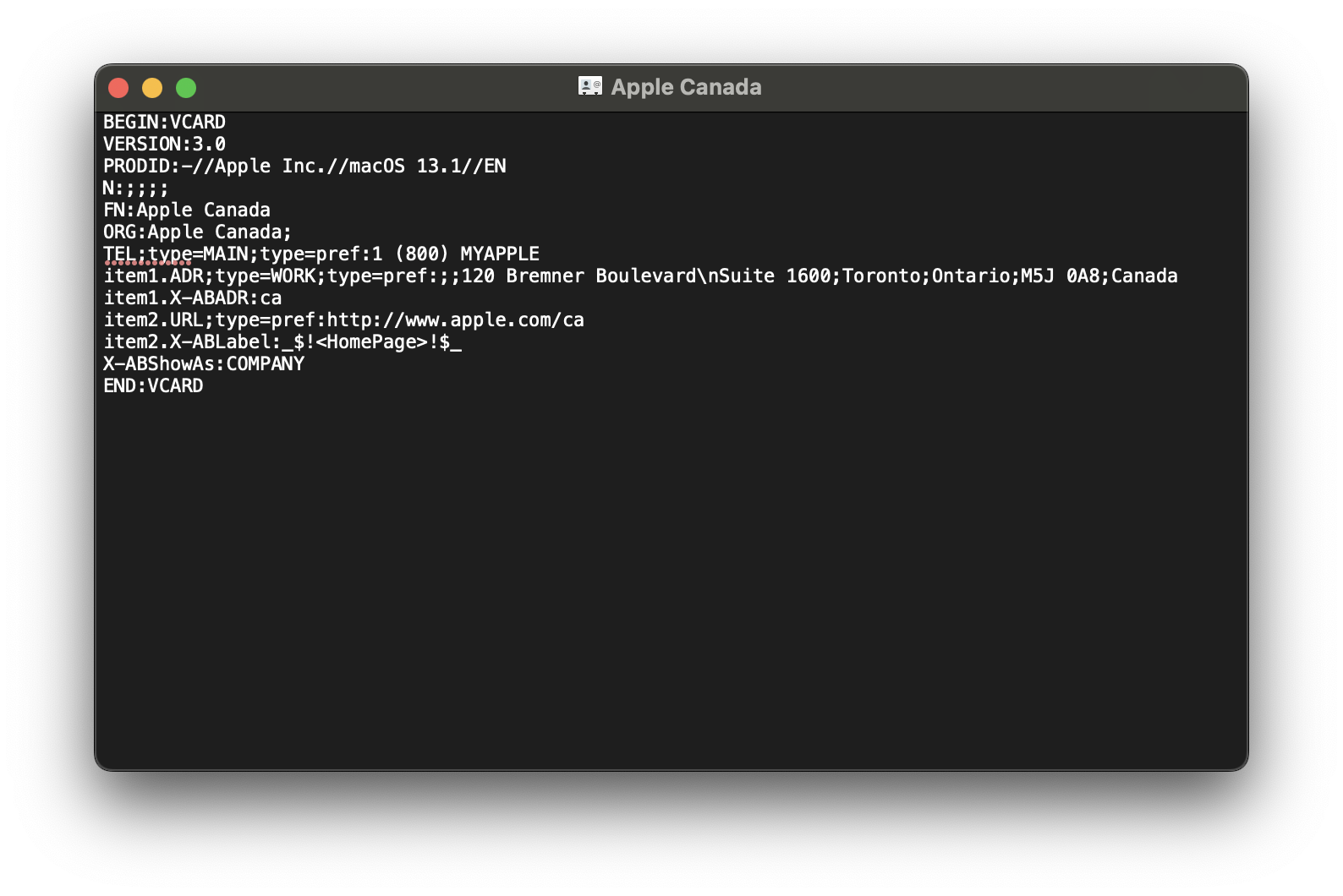 Quel est le format d'un fichier csv pour les vcards iphone ?