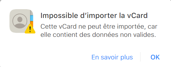 Pour ne pas avoir ce message et importer les contacts d'un fichier Excel / csv sur l'application téléphone de l'iPhone ? Merci.