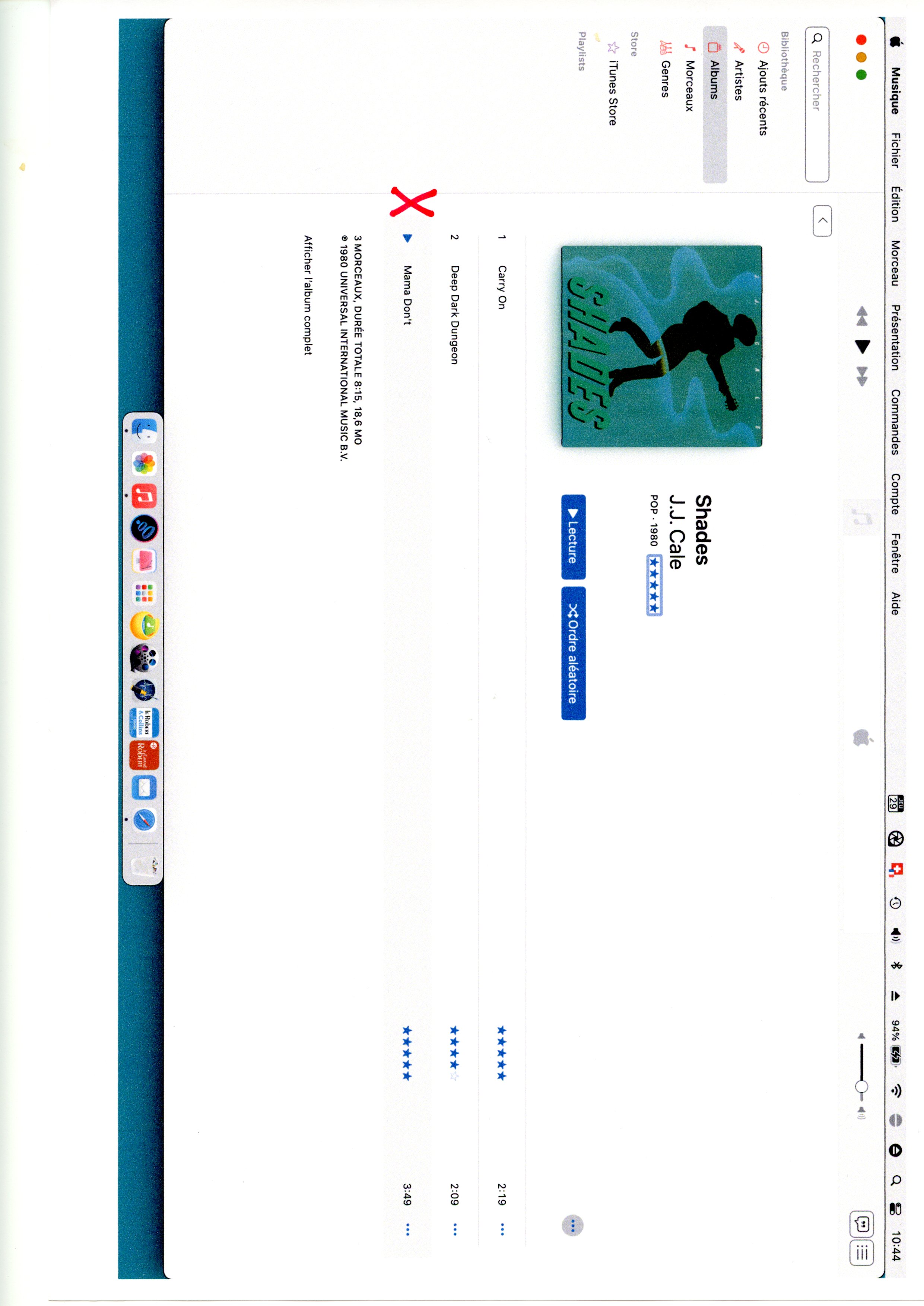 • Est-ce que tu rencontres ce souci avec d'autres albums dont tu as acheté les morceaux ou uniquement celui-ci ?