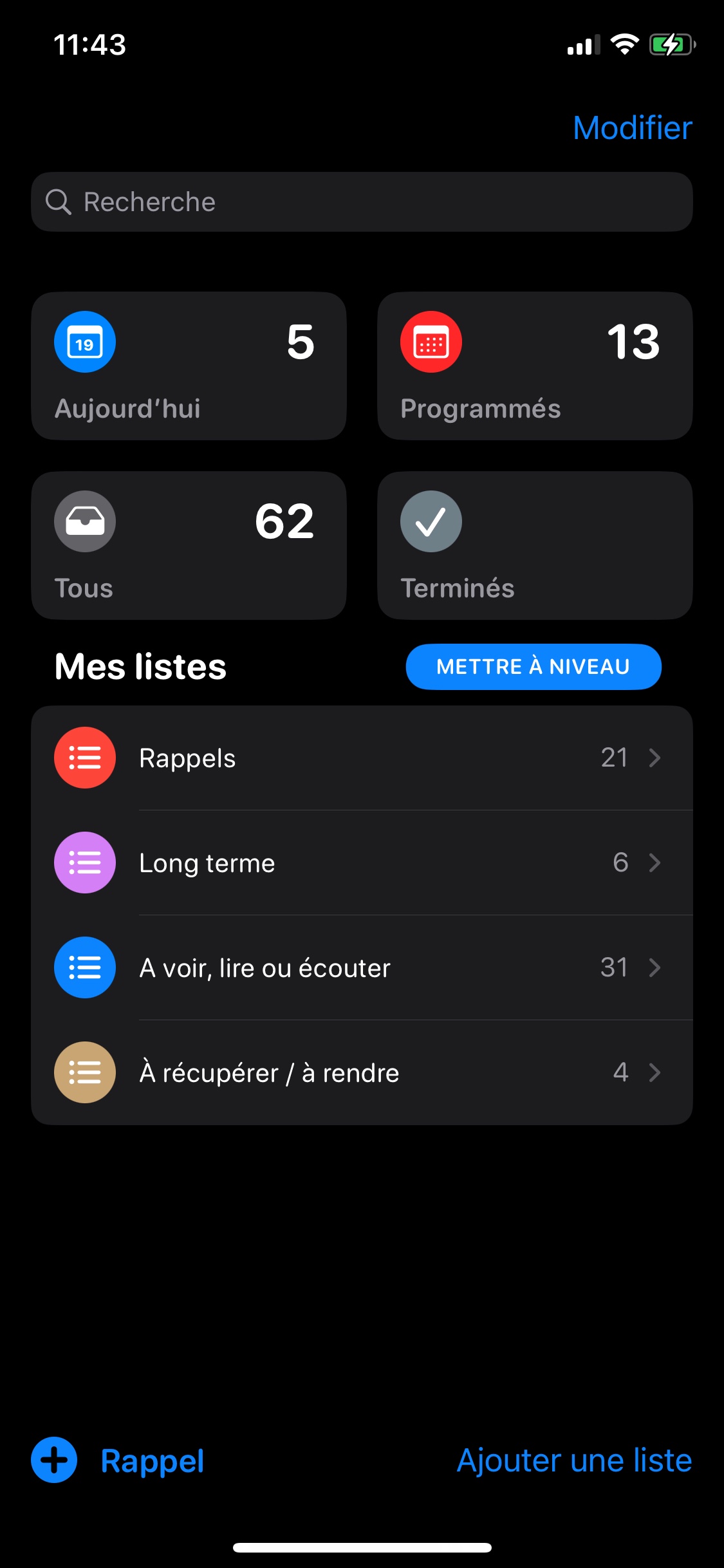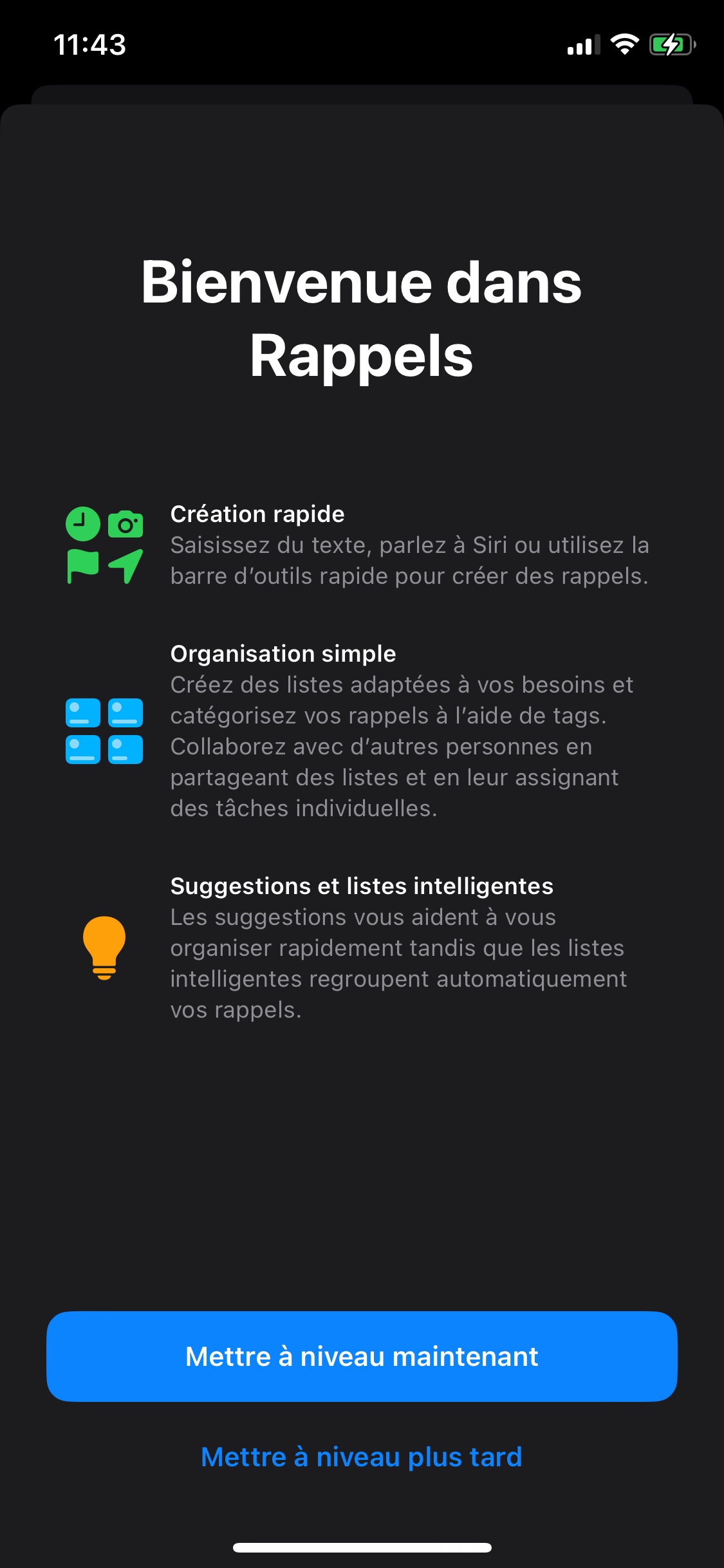 Je n'avais pas mis à niveau Rappels sur mon iPhone car j'utilisais jusqu'à présent une version de MacOS non compatible. Maintenant que c'est le cas, j'aimerais passer sur cette nous version et faire disparaitre ce bouton.