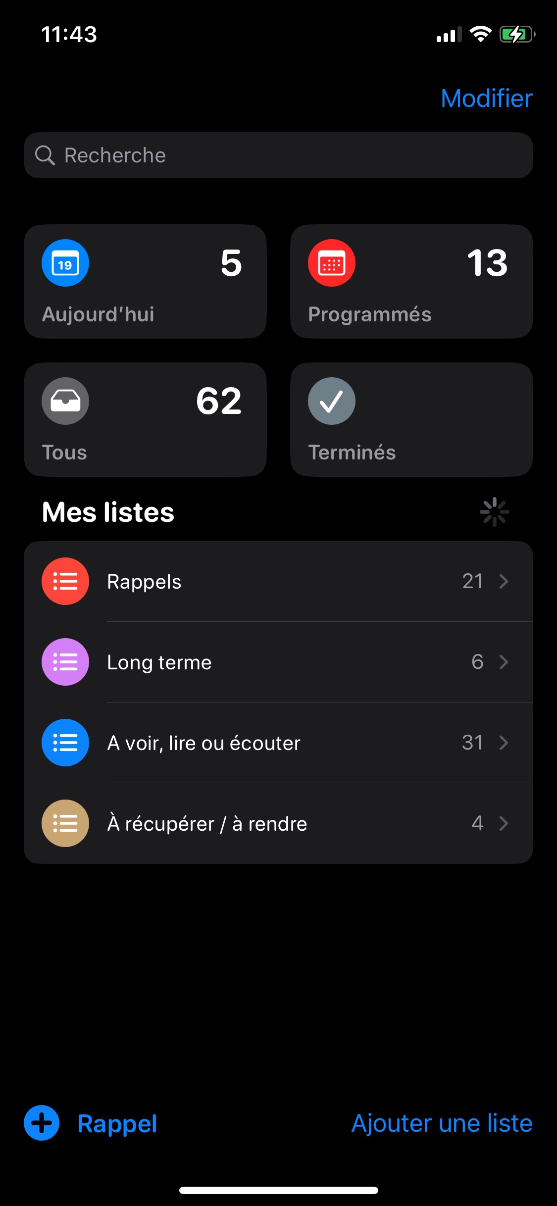 Contexte : j'utilise l'application Rappels sur mon MacBook Pro retina de fin 2013 avec MacOs Big Sur (11.7.2), que je viens d'installer trois jours plus tôt (j'étais sur MacOS 10.14.6), et sur mon iPhone X avec iOS 16.1.2, fraichement installée également (j'étais sur iOS 15.7.1).