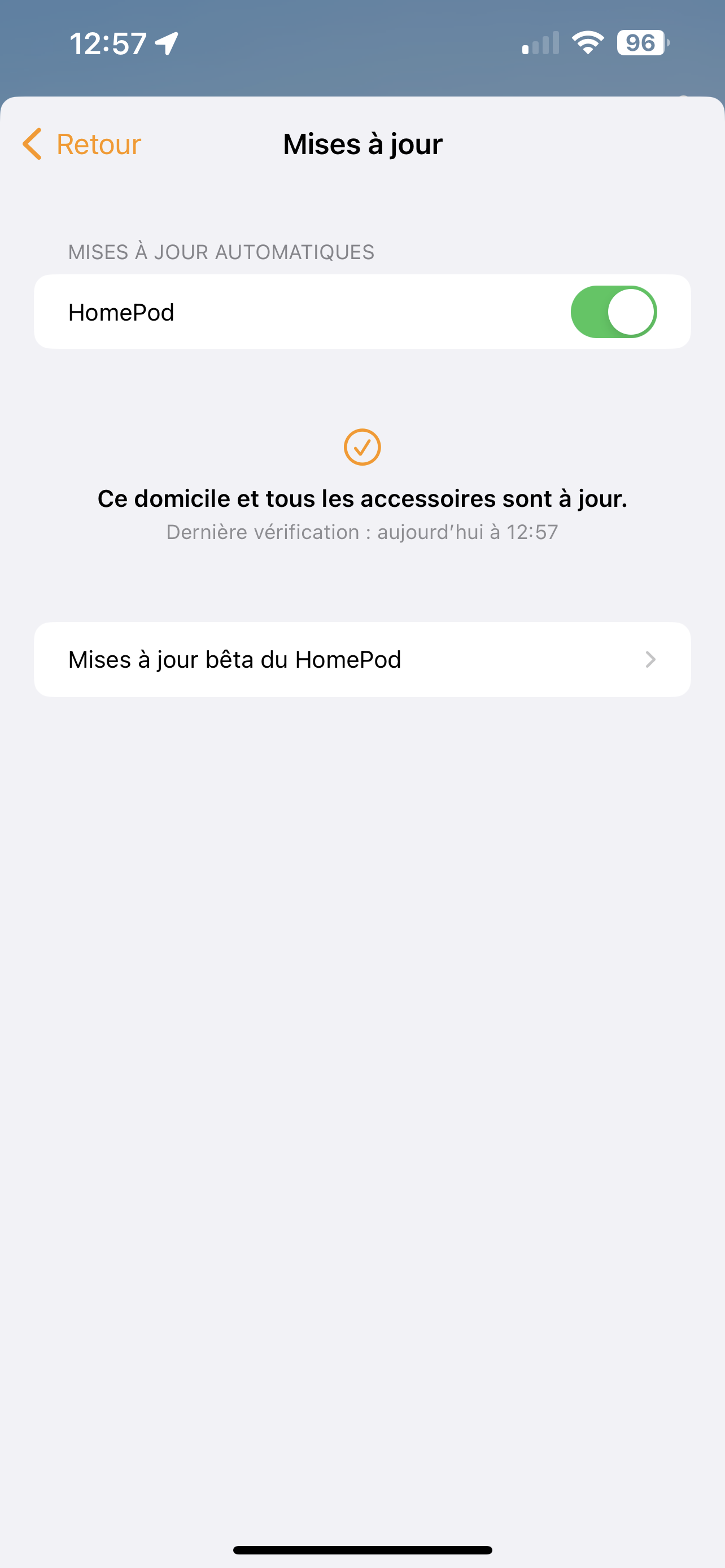 j’ai mis l’iPhone en 16.4.1. Mon conjoint aussi (il est invité dans l’app maison). Tous mes appareils son Mr a chaque fois a jours. Les 3 Apple TV, l’iPad le mac et l’iPhone.