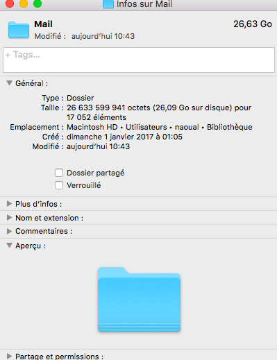 Le dossier qui contient les messages, et ses pièces jointes se trouvent à la racine de votre bibliothèque, celle ci est cachée, donc pour l'inspecter :