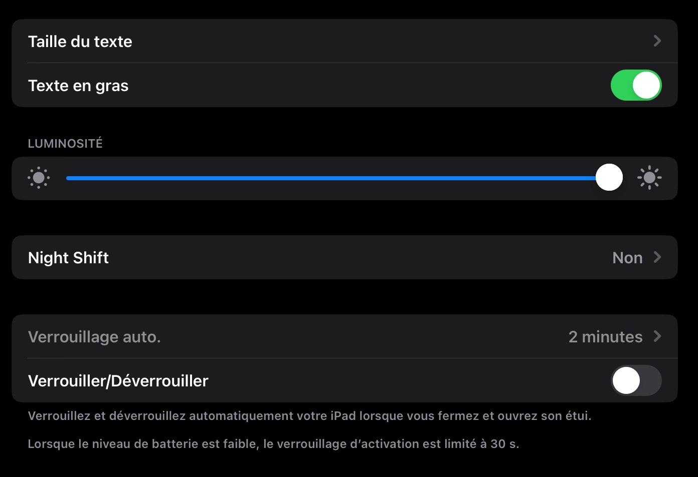 Sur mon iPad, il y a le bouton de verrouillage automatique.Cependant, je ne peux pas appuyer dessus